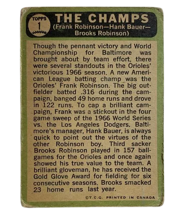 #1 The Champs (Frank Robinson / Hank Bauer / Brooks Robinson) 1967 O-Pee-Chee