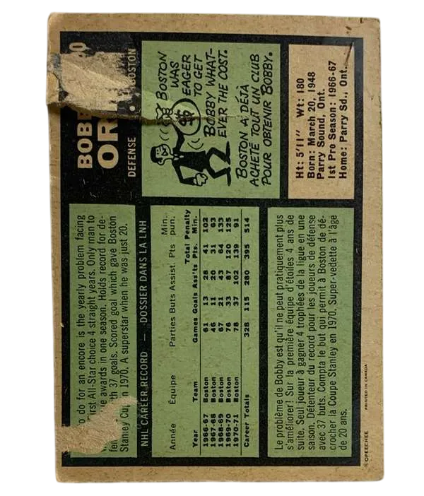 #100 Bobby Orr (Back tape damage) 1971-72 O-Pee-Chee