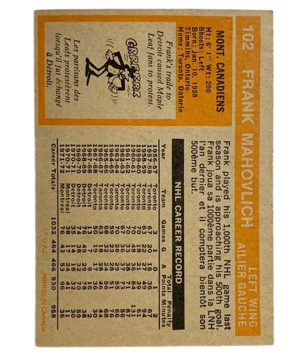#102 Frank Mahovlich 1972-73 O-Pee-Chee