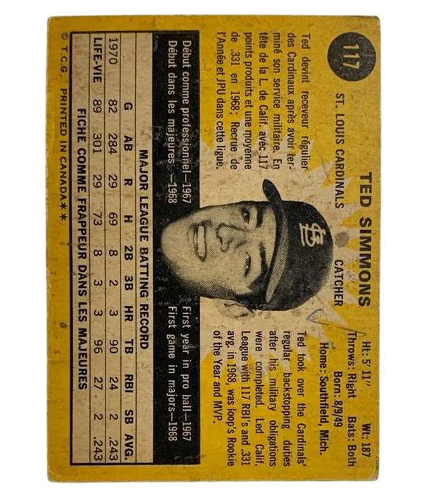 #117 Ted Simmons (Rookie Card) 1971 O-Pee-Chee