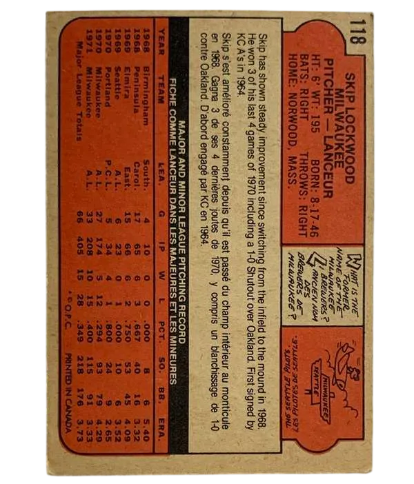 #118 Skip Lockwood 1972 O-Pee-Chee
