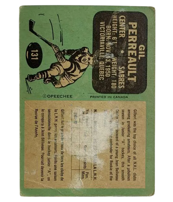 1 review for #131 Gilbert Perreault Rookie Card (back glue damage) 1970-71 O-Pee-Chee