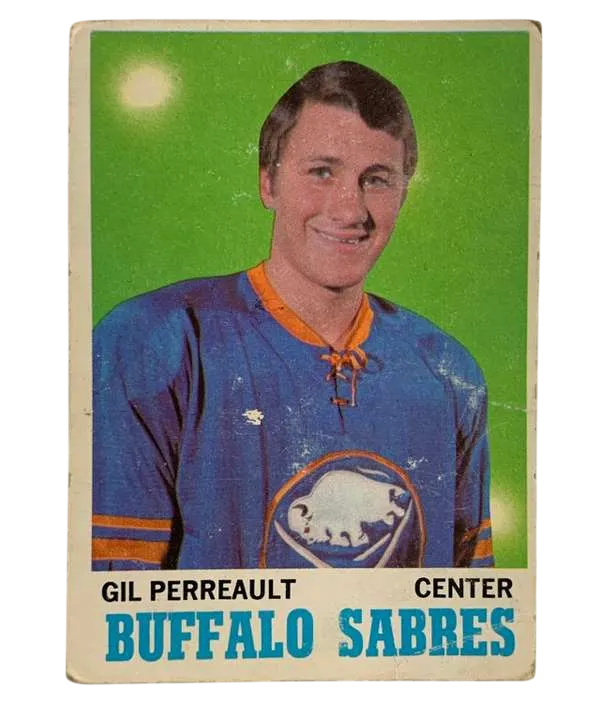 Capture a slice of ice hockey history with the #131 Gilbert Perreault Rookie Card from the 1970-71 O-Pee-Chee set. This trading card features the legendary right winger, celebrated for his lightning speed and agility on the ice. It's an essential piece for collectors and fans alike, commemorating Perreault's debut season.