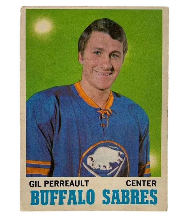 Capture a slice of ice hockey history with the #121 Gilbert Perreault Rookie Card from the 1970-71 O-Pee-Chee set. This trading card features the legendary right winger, celebrated for his lightning speed and agility on the ice. It's an essential piece for collectors and fans alike, commemorating Perreault's debut season. Crafted by O-Pee-Chee, a trusted name in sports memorabilia, this card is a testament to the rich heritage of the sport. Its vintage charm and connection to a standout athlete make it a prized possession, perfect for display or as a cornerstone of any collection.