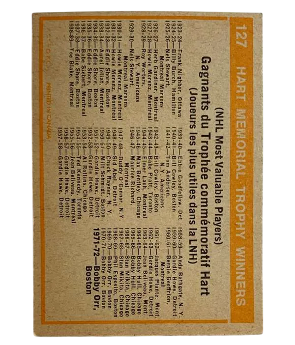 #127 Hart Memorial Trophy 1972-73 O-Pee-Chee