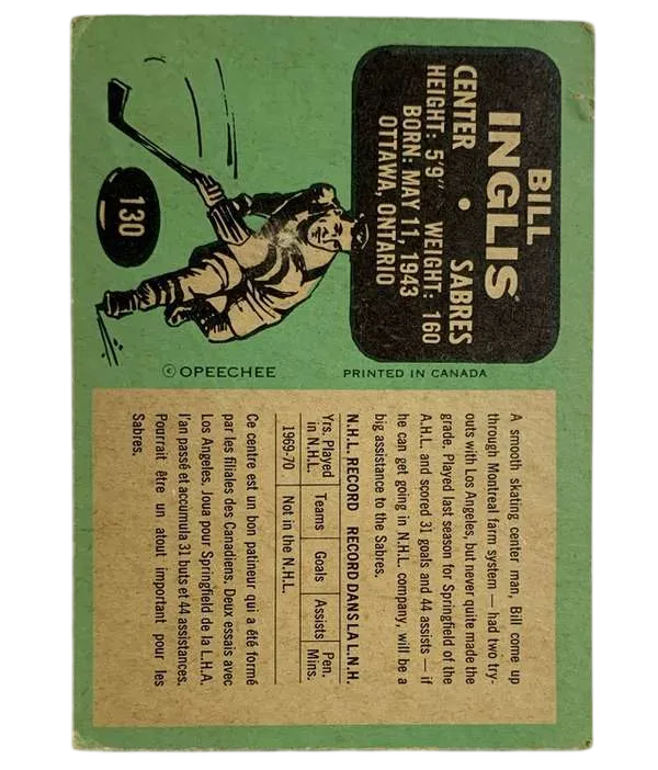 #130 Bill Inglis (RC) 1970-71 O-Pee-Chee