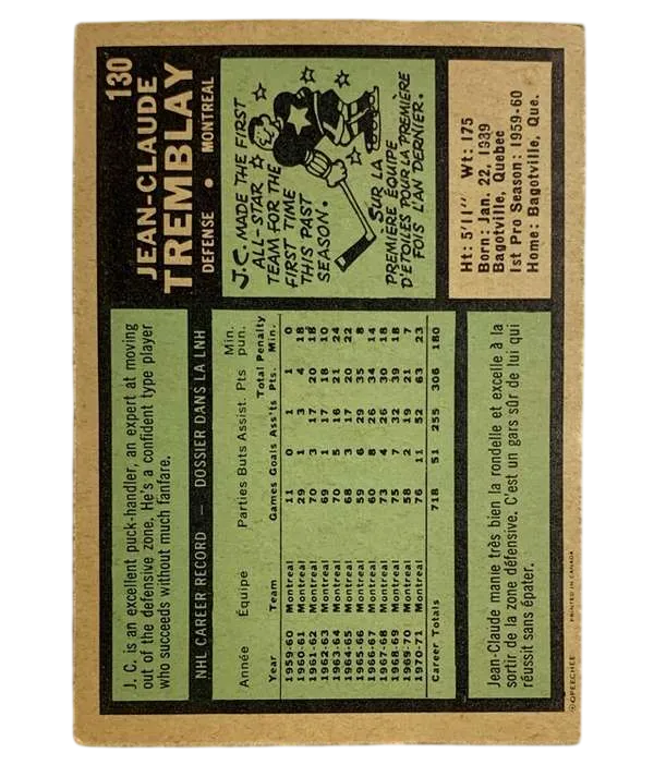 #130 J.C. Tremblay 1971-72 O-Pee-Chee