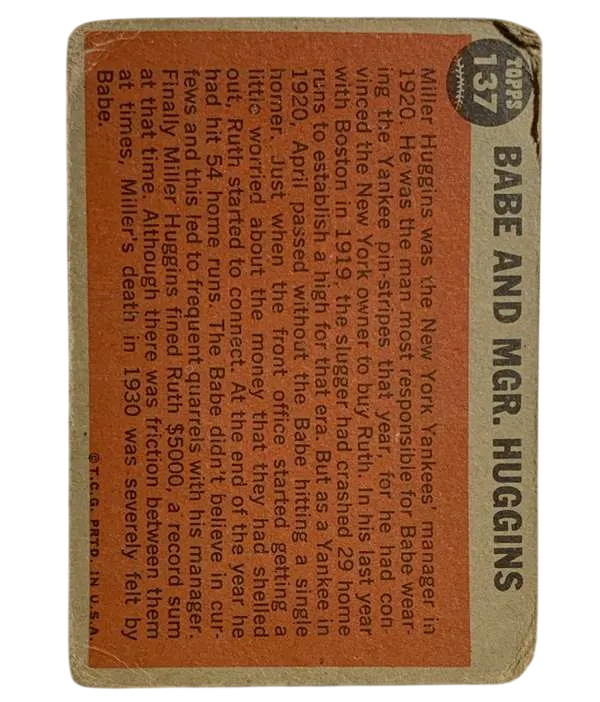 Be the first to review “#137a Babe and Mgr. Huggins 1962 Topps”