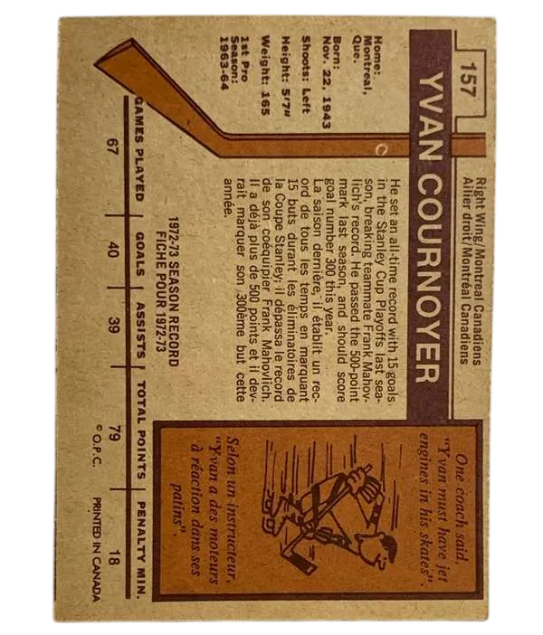 #157 Yvan Cournoyer 1973-74 O-Pee-Chee – Light-Backs