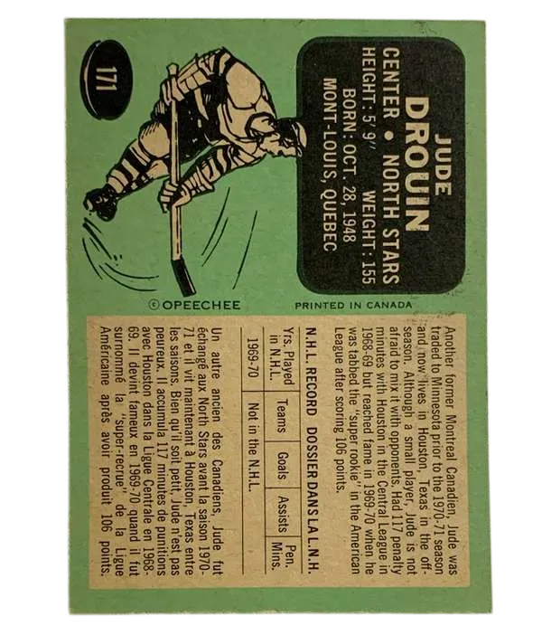 #171 Jude Drouin Rookie Card (EX) 1970-71 O-Pee-Chee
