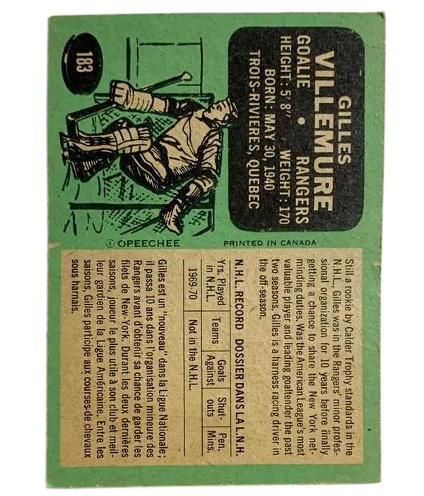 #183 Gilles Villemure (PR) 1970-71 O-Pee-Chee