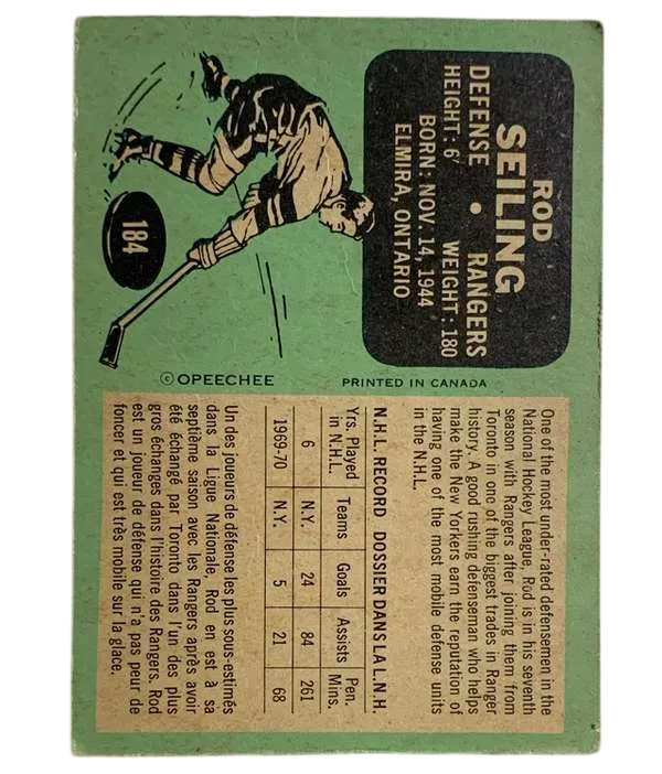 #184 Rod Seiling (PR) 1970-71 O-Pee-Chee