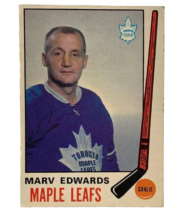 Experience a piece of ice hockey history with the #185 Marv Edwards Rookie Card from the 1969-70 O-Pee-Chee set. This vintage sports trading card features Marv Edwards, a notable player from the Toronto Maple Leafs, captured during the start of his professional journey in the National Hockey League (NHL). It’s a must-have for enthusiasts looking to add a classic rookie card to their collection.Crafted by O-Pee-Chee, a respected manufacturer known for its quality collectibles, this card is a cherished memorabilia item for fans of the sport. The card is part of a iconic series that commemorates the 1969-70 season, making it a perfect acquisition for collectors who appreciate the legacy and nostalgia of ice hockey.