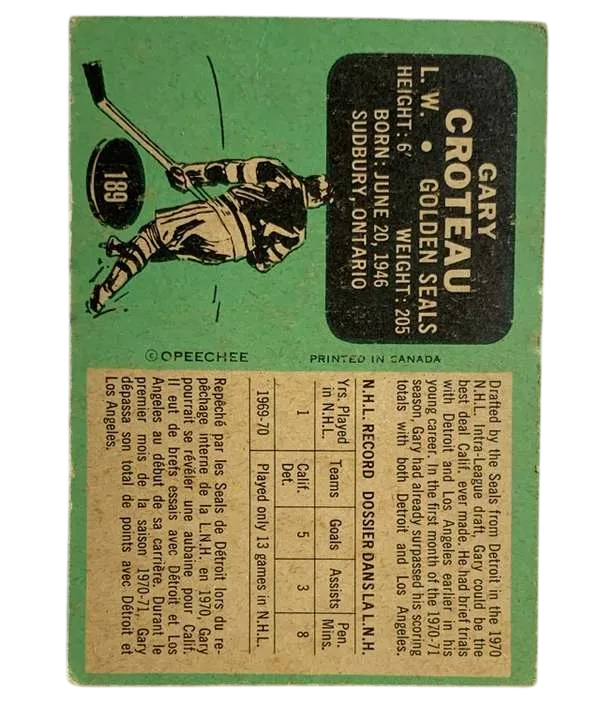 #189 Gary Croteau Rookie Card (PR) 1970-71 O-Pee-Chee