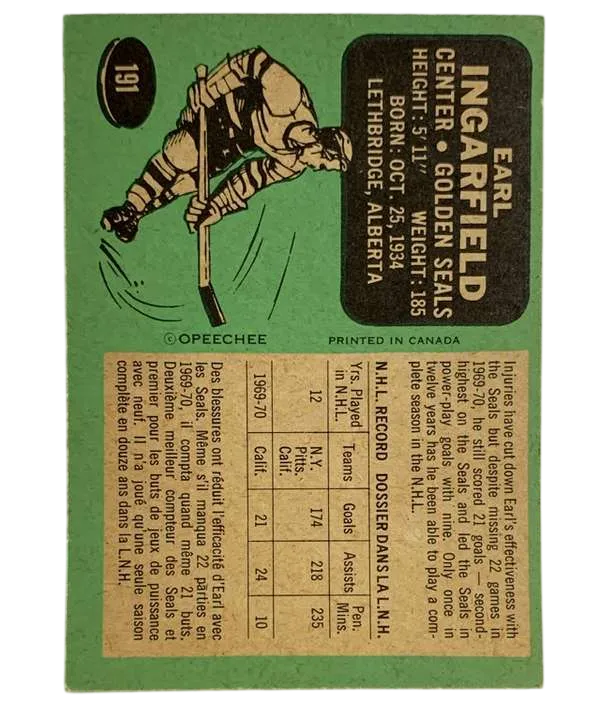 #191 Earl Ingarfield (EX) 1970-71 O-Pee-Chee