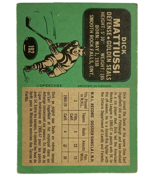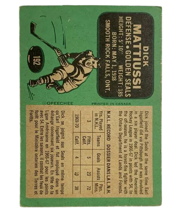 #192 Dick Mattiussi (VG) 1970-71 O-Pee-Chee