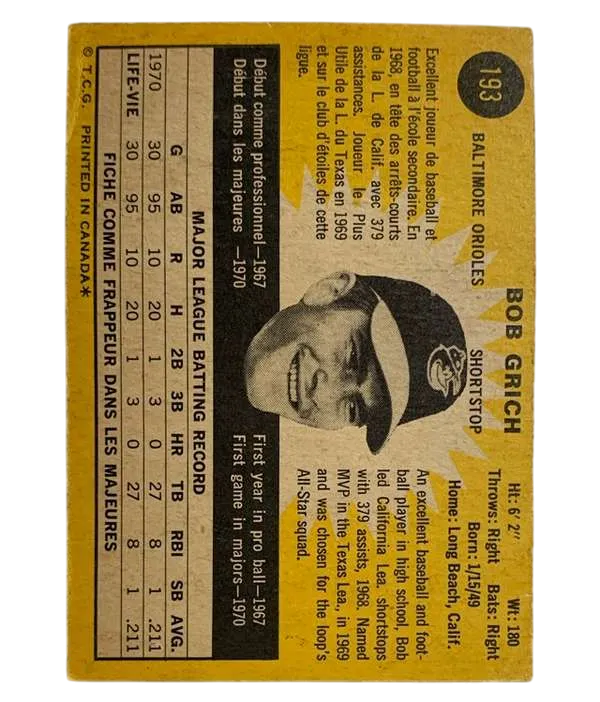 #193 Bob Grich (Rookie Card) 1971 O-Pee-Chee