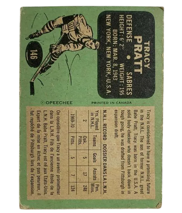 Vintage 1970-71 O-Pee-Chee Tracy Pratt #146 – Buffalo Sabres Inaugural Season