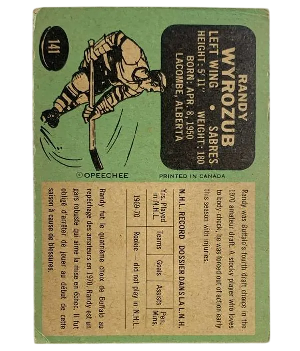 1970-71 O-Pee-Chee Randy Wyrozub Rookie #141 Buffalo Sabres – PR