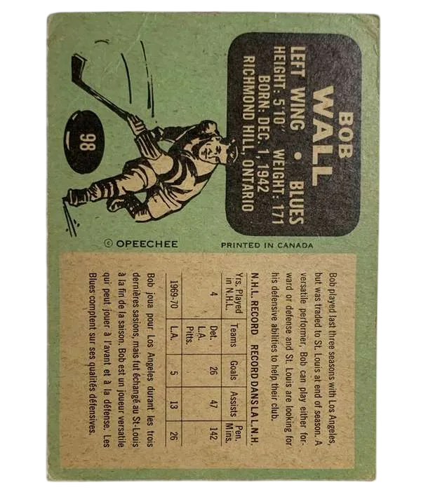1970 O-Pee-Chee Bob Wall #98 St. Louis Blues (GD-VG 2.5)