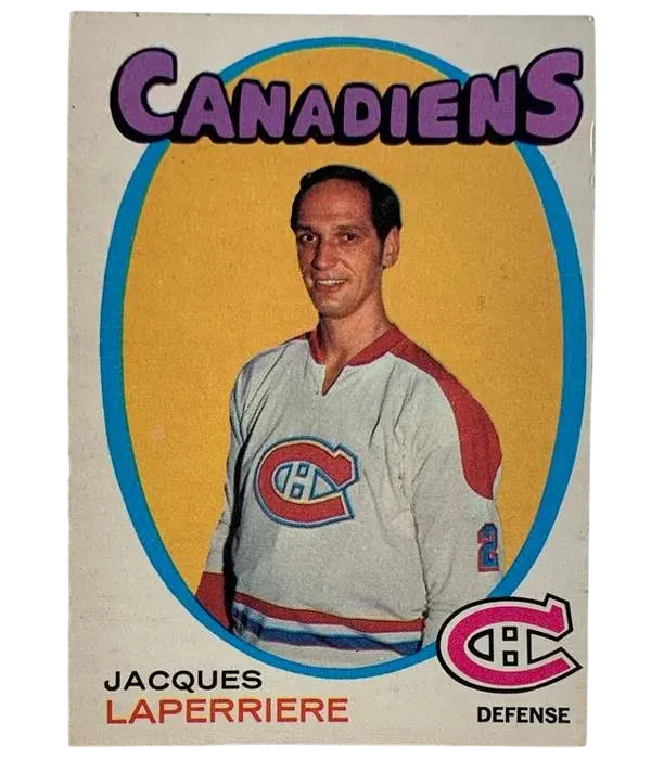 This 1971-72 O-Pee-Chee Jacques Laperriere #144 card comes from one of the most beloved sets in hockey collecting history. The 1971-72 OPC set is famous for its vibrant "pro-set" aesthetic and the iconic rounded frame for player photos. Laperriere, who was an eight-time Stanley Cup champion (six as a player), is featured here in the classic Montreal Canadiens sweater, coming off a 1971 championship season where he anchored the defense.