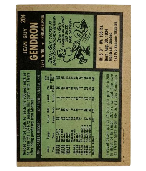 Secure a piece of Broad Street Bullies history with this 1971-72 O-Pee-Chee Jean-Guy Gendron #204.
