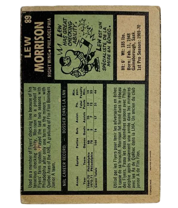 1971-72 O-Pee-Chee Lew Morrison #89 Philadelphia Flyers GD-VG 2.5