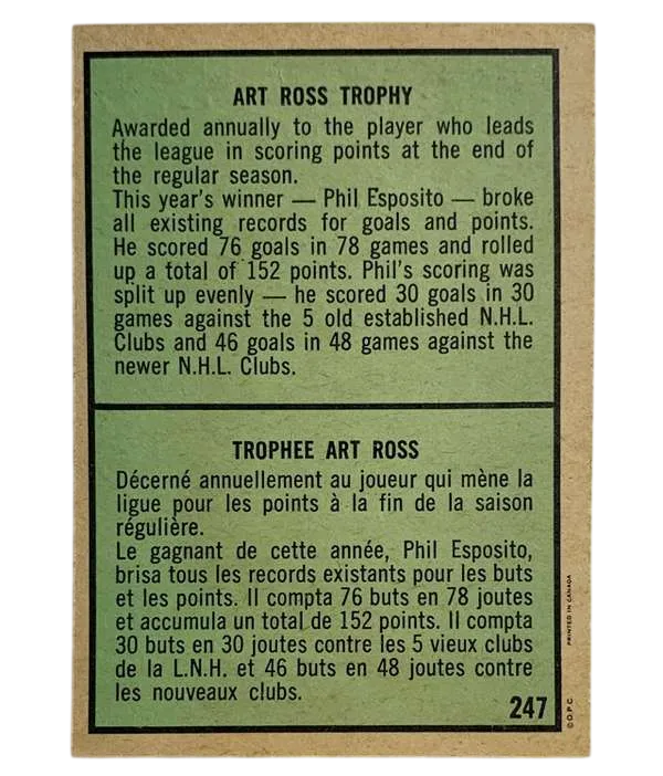 Own a Piece of NHL History: The Record-Breaking 1971-72 O-Pee-Chee Phil Esposito Art Ross Trophy #247