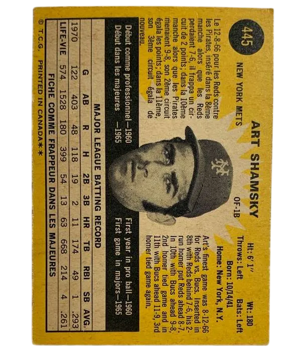 Art Shamsky #445 New York Mets Rare Bilingual OPC – NM