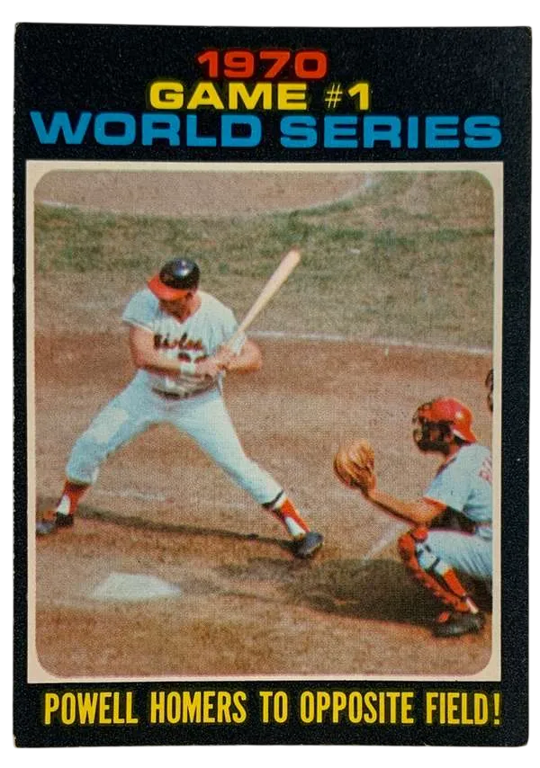 The 1970 World Series was a showcase of dominance for the Baltimore Orioles. Boog Powell, the reigning American League MVP, led the charge. In Game 1, his opposite-field home run helped propel the Orioles to a 4-3 victory, setting the tone for their eventual 4-1 series win. This card is part of the sought-after World Series subset within the 1971 set, widely considered one of the most iconic and difficult-to-grade designs in the history of the hobby.