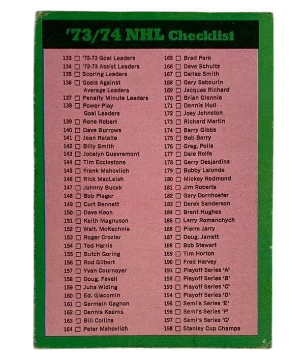 Light Backs Hockey Checklist #263 - Unmarked Checklist - Cards 133-264 (VG)
