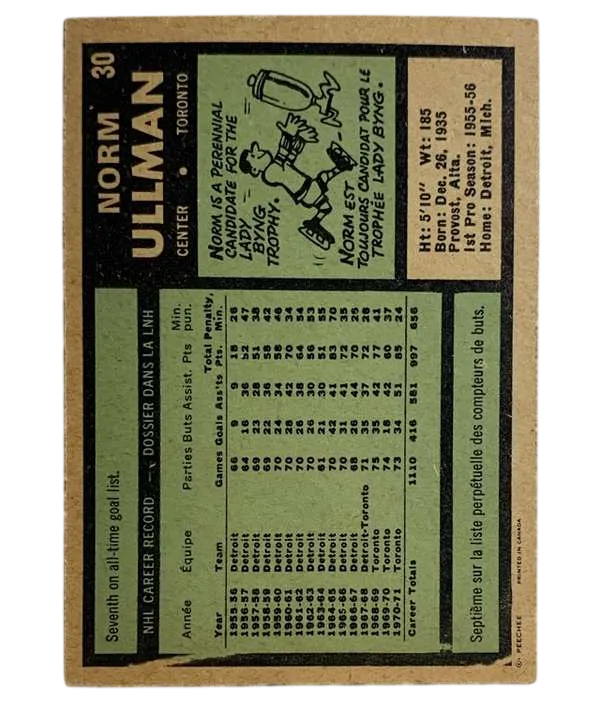 #30 Norm Ullman (EX) 1971-72 O-Pee-Chee