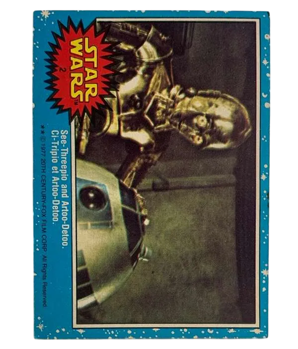 Celebrate the timeless charm of the Star Wars saga with this vintage O-Pee-Chee trading card featuring the iconic duo, R2-D2 and C-3PO. Card #2 from the 1977 series captures the essence of these beloved droids, rendered in a vibrant red parallel variety that adds a unique touch to this collectible. Proudly manufactured in Canada, this original card measures the classic 3½" x 2½" size and is a must-have for enthusiasts of the franchise.It's a slice of movie history, a nostalgic piece from the 1977 Star Wars O-Pee-Chee VTG Series 1 OPC Red set, perfect for fans and collectors alike.