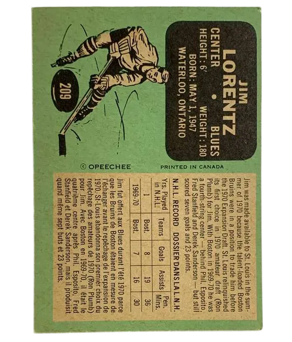#209 Jim Lorentz Rookie Card (EX) 1970-71 O-Pee-Chee