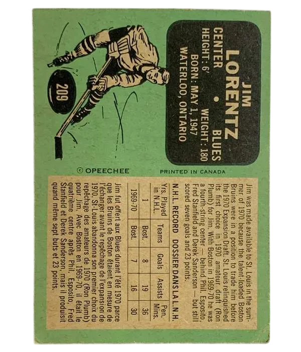 #209 Jim Lorentz Rookie Card (PR) 1970-71 O-Pee-Chee