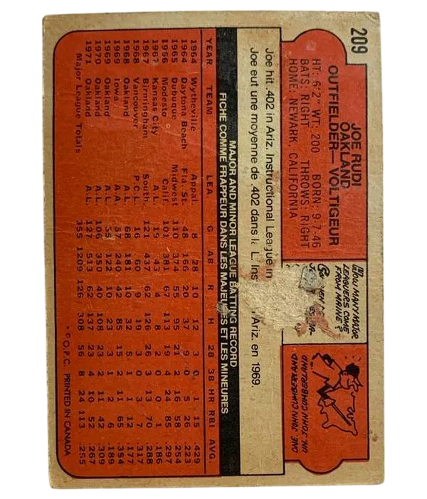 #209 Joe Rudi 1972 O-Pee-Chee