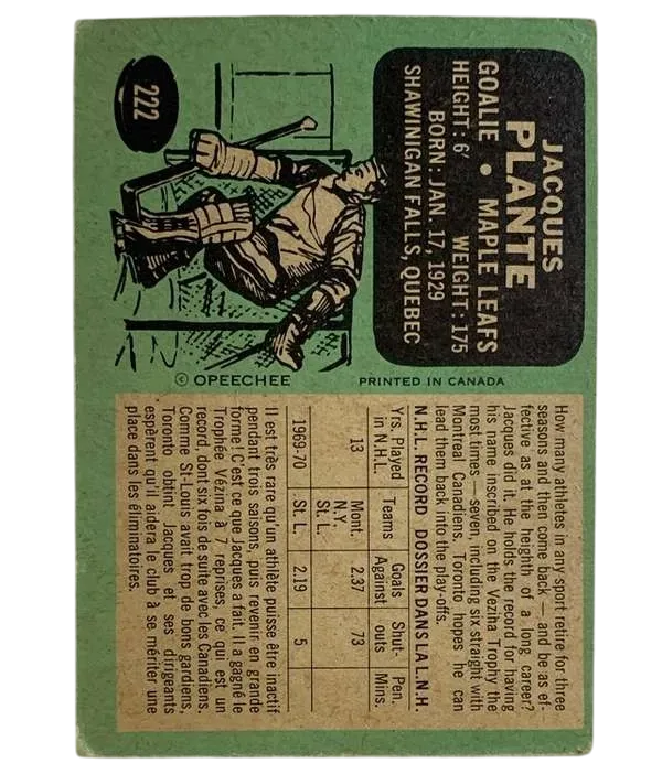 1 review for #222 Jacques Plante (Excellent) 1970-71 O-Pee-Chee