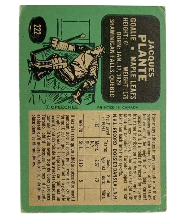 #222 Jacques Plante (PR) 1970-71 O-Pee-Chee