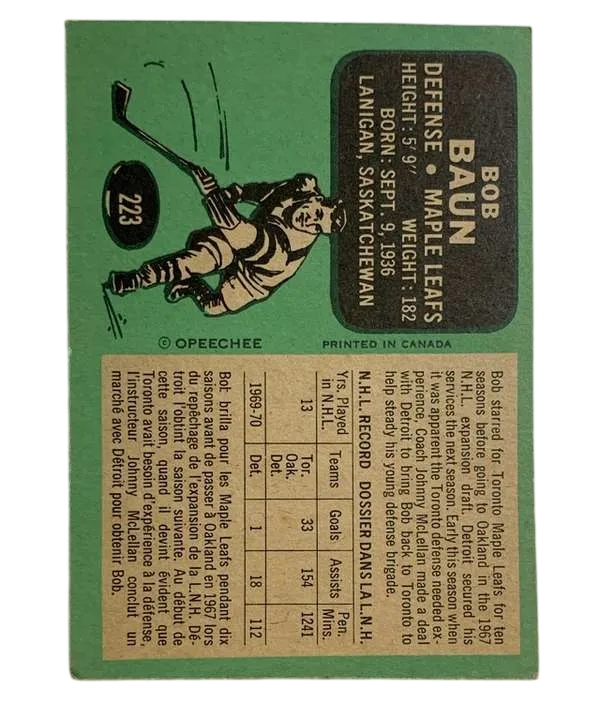 #223 Bob Baun EX 1970-71 O-Pee-Chee