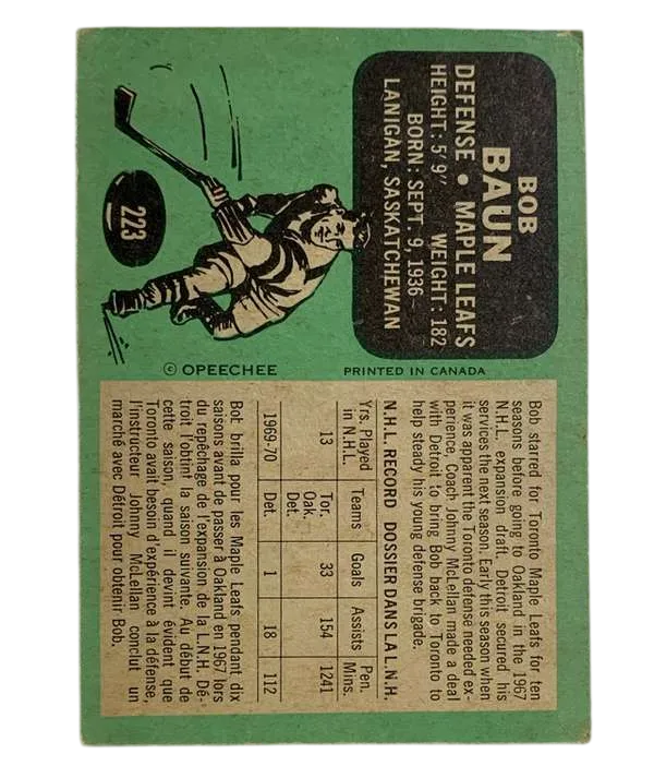 #223 Bob Baun PR 1970-71 O-Pee-Chee