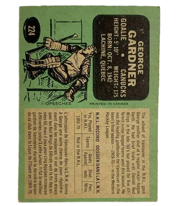 #224 George Gardner Rookie Card 1970-71 O-Pee-Chee