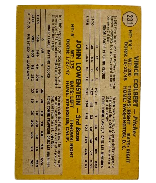 #231 Indians 1971 Rookie Stars (Vince Colbert / John Lowenstein) RC (VG)
