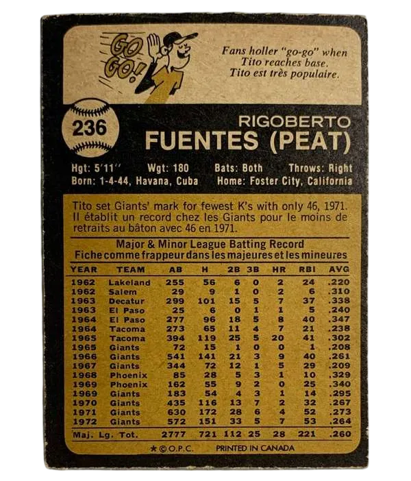 #236 Tito Fuentes 1973 O-Pee-Chee