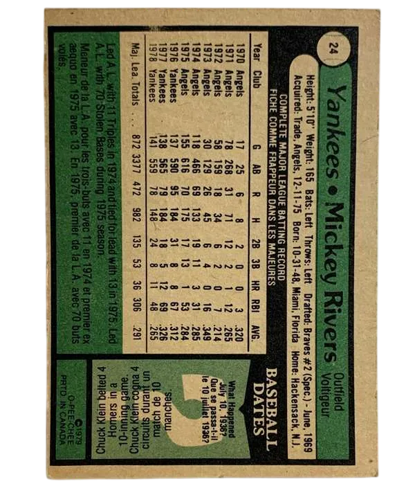 #24 Mickey Rivers 1979 O-Pee-Chee