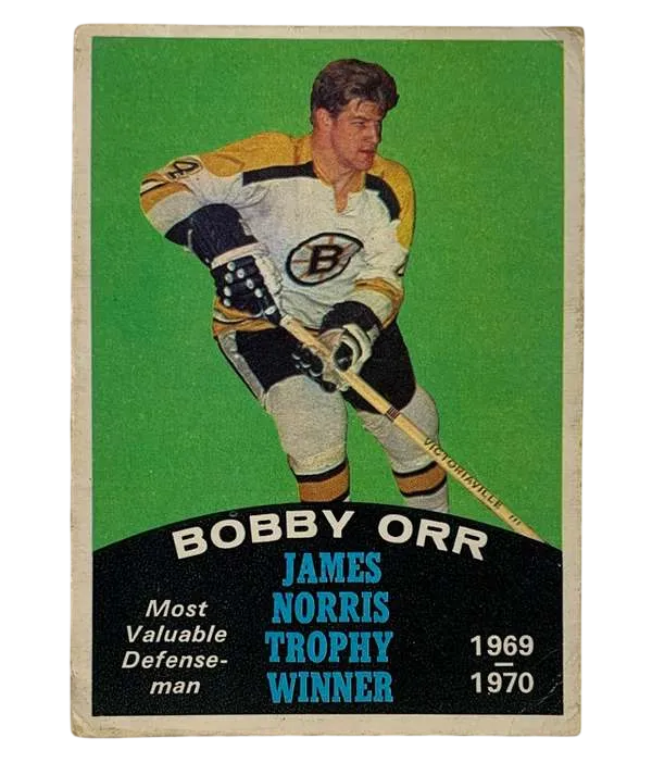 Capture a piece of hockey history with this 1970-71 O-Pee-Chee #248a Bobby Orr card, featuring the legendary Boston Bruins player. This vintage collectible version has no mention of Gordie Howe on the back and hails from the treasured 1970-71 O-Pee-Chee set, known for its exquisite detail and quality. A must-have for any serious collector, it showcases the brilliance of one of hockey's greatest athletes during the 1970 NHL season. Crafted with care by O-Pee-Chee, the card is an English-language issue and celebrates the notable Bobby Orr, revered for his exceptional skill on the ice. Card Number 248A, it's a timeless tribute to the sport's rich heritage and a standout piece for fans of the NHL and the Boston Bruins.