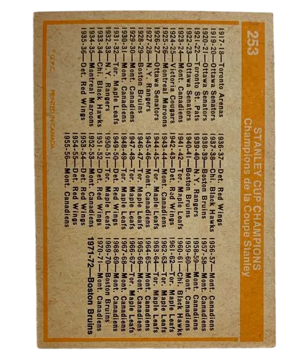 #253 Stanley Cup Trophy 1972-73 O-Pee-Chee