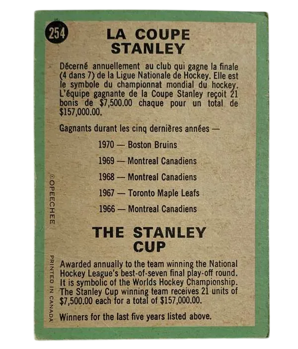 #254 The Stanley Cup (VG) 1970-71 O-Pee-Chee