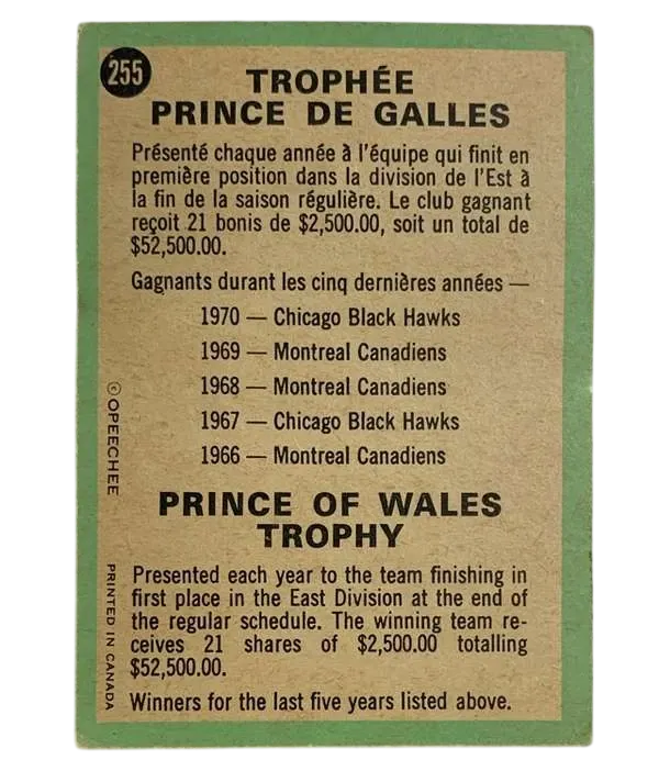 #255 Prince of Wales Trophy (PR) 1970-71 O-Pee-Chee