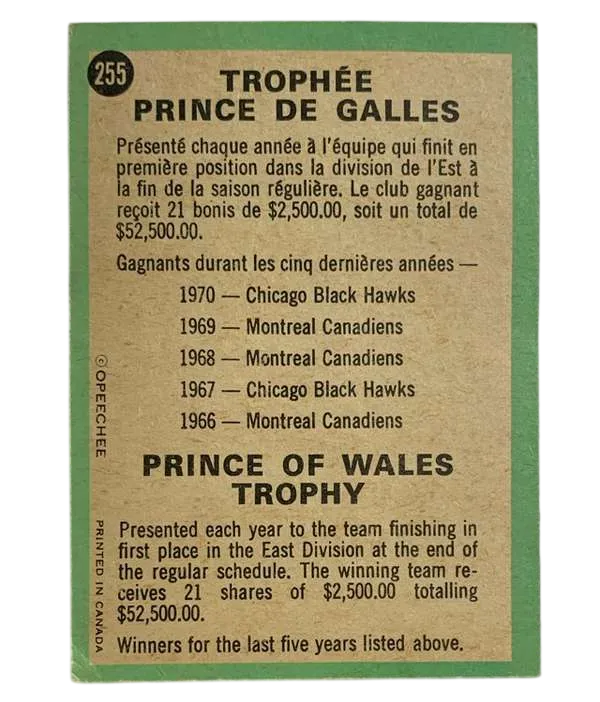 #255 Prince of Wales Trophy (VG) 1970-71 O-Pee-Chee