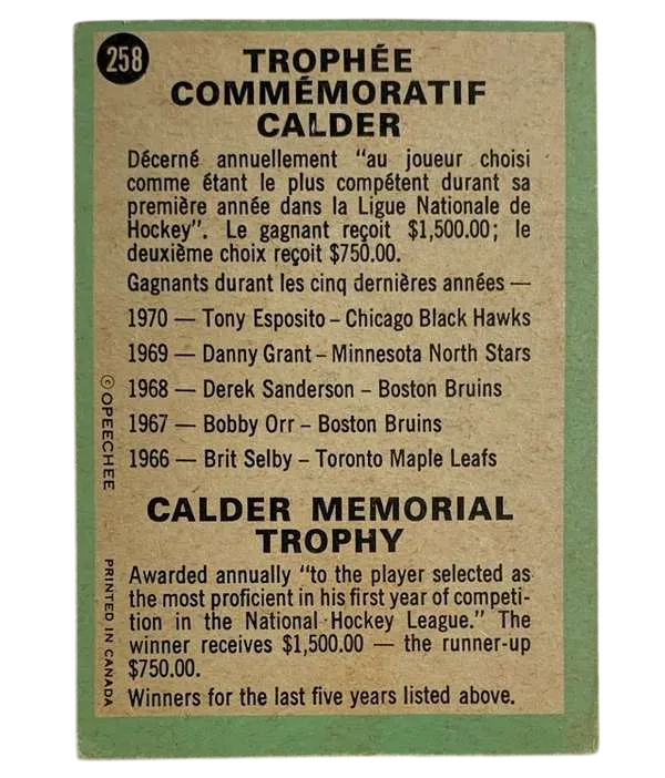 #258 Calder Trophy (VG) 1970-71 O-Pee-Chee
